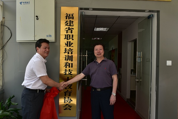 省人社厅党组成员、副厅长洪长春与福建省职业培训和技工教育协会会长陈仁毅参加揭牌